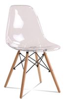 Eleganckie, proste krzesło o nowoczesnej formie, wprowadza zupełnie nową jakość i funkcjonalność. Świetnie wyprofilowane siedzisko krzesła wykonane z wytrzymałego polipropylenu zapewnia komfort siedzenia. Stelaż 4 nogi z drewna bukowego połączone elementami czarnego metalu. Kolor transparent/buk