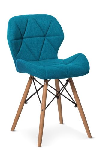 Krzesło Andre II Niebieskie - Eleganckie, proste krzesło o nowoczesnej formie, wprowadza zupełnie nową jakość i funkcjonalność. Siedzisko tapicerowane wytrzymałą tkaniną z charakterystycznym wzorem trójkątów.