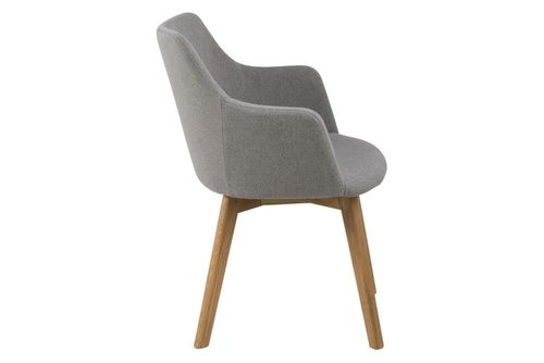 Krzesło Bella to połączenie szarości z drewnem kojarzone ze stylem skandynawskim. Tapicerowane siedzisko w kolorze jasnej szarości ma nowoczesną formę a połączenie jej z drewnianą podstawą nadaje skandynawskiego charakteru. Podstawa została wykonana z drewna dębowego dodatkowo olejowanego, co zabezpiecza drewno przed zabrudzeniami oraz wydobywa jego piękno. Wysokość: 81