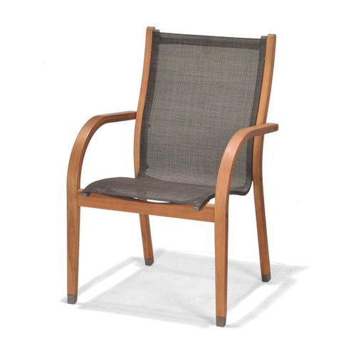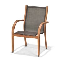 Krzesło Bramley to najlepsza propozycja dla osób ceniących sobie atrakcyjną formę i wygodę w użytkowaniu. Profilowane siedzisko wykonane zostało z materiału Weathernet Earth Brown odpornego na niekorzystny wpływ promieni słonecznych. Lekka, aluminiowa konstrukcja wykończona została drewnem eukaliptusa. Nadaje mu ono lekko egzotycznego charakteru - ten niebanalny styl zaspokoi wymagające gusta. Sztaplowanie pozwala na wygodne przechowywanie.