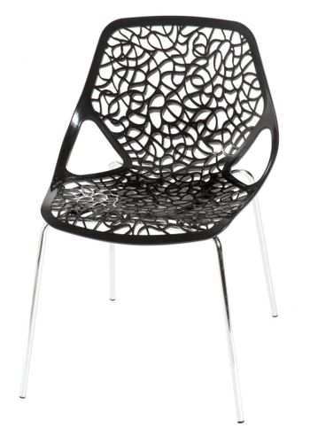 Krzesło Cepelia to nietuzinkowy, oryginalny produkt wykonany z tworzywa (siedzisko) i chromowanej stali (podstawa). Wewnętrzny wzór siedziska przypomina winorośl.,Krzesła można sztaplować.