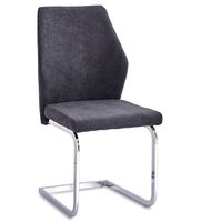 Nowoczesne krzesło tapicerowane wytrzymałą tkaniną bawełnianą. Wyprofilowane oparcie. Stelaż metalowy w kształcie płozy. Kolor szary/chrom. Idealne krzesło które swoje miejsce znajdzie w jadalni przy wspólnych posiłkach. Swoją prostotą zachwyci najbardziej wymagających klientów.