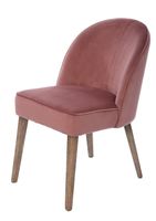 Różowe krzesło Dean o wymiarach 49x65x80cm. Siedzisko z delikatnie wygiętym oparciem, zostały wykonane z miękkiego weluru w kolorze pudrowego różu. Zastosowana tkanina jest niezwykle wygodna i łatwa w konserwacji, co nie jest bez znaczenia przy często użytkowanych krzesłach. Nogi krzesła zostały wykonane z drewna w brązowym kolorze, a ustawienie ich pod kątem, dodaje meblowi uroku. Krzesło Dean to kwintesensja wygody, komfortu i niewymuszonej nowoczesności.