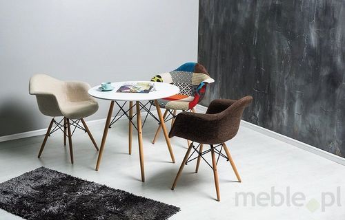 Krzesło Denis to mebel jedyny w swoim rodzaju. Na szczególną uwagę zasługuje niebanalna stylistyka, która w każdym wnętrzu będzie prezentowała się bardzo interesująco. Patchwork coraz częściej gości na współczesnych meblach i jest coraz bardziej ceniony. Kolorowe siedzisko zostało zrównoważone klasycznymi, drewnianymi nogami, co dało razem bardzo stylową, ale i oryginalną całość.