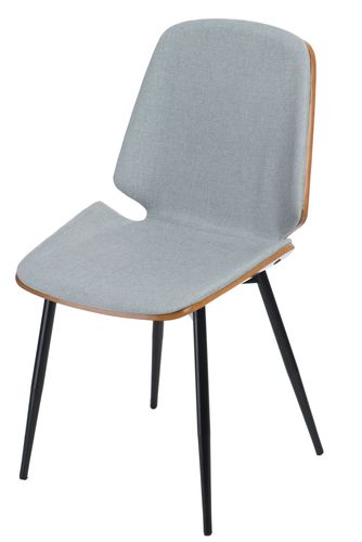 Krzesło Grant to połączenie siedziska wykonanego z wytrzymałej tkaniny o grubszym, efektownym splocie, osadzonego na podstawie z naturalnego orzechowego forniru z nowoczesnymi metalowymi nogami. Klasyczny czarny kolor nóg to doskonała baza dla ciekawej formy siedziska. Krzesło Grant oferujemy w dwóch wersjach kolorystycznych.