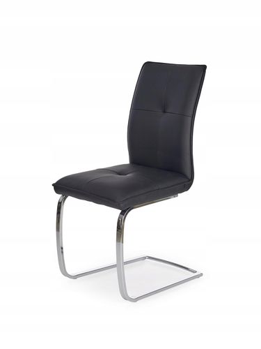 Krzesło K252 tapicerowane do jadalni Halmar jest niezwykle wygodne za sprawą sprężyn umiejscowionych w siedzisku. Krzesło tapicerowane jest wysokogatunkową eko-skórą, która na oparciu i siedzisku posiada dekoracyjne przeszycia. Chromowana podstawa typu płoza pozwala na delikatne bujanie się w fotelu.