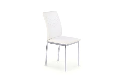 K137 to krzesło o białym kolorze eco skóry z pięknymi, delikatnymi przeszyciami. Nowoczesny styl i najwyższa jakość wykorzystanych materiałów w jednym meblu.