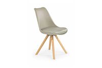 K201 to krzesło w pięknym kolorze khaki, który ozdobi pomieszczenie oraz nada mu charakteru. Styl skandynawski. Wykonany z wysokiej jakości materiałów: polipropylen, eco skóra i drewno lite-bukowe.