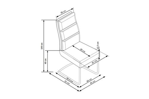 K207 to krzesło wyposażone w sprężyny. Posiada neutralny kolor przez co wpasuje się w wiele pomieszczeń i aranżacji. Piękne nogi płozy i eco skóra, która jest wytrzymała i łatwa w czyszczeniu.