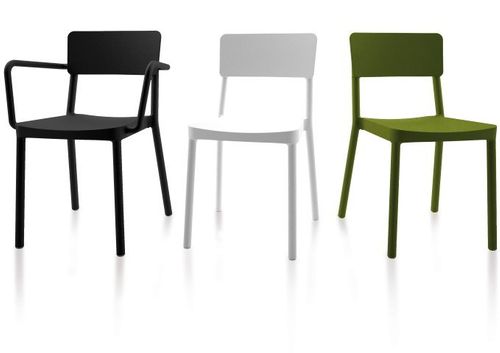 Krzesło wykonane z polipropylenu . Nadaje się zarówno do użytku zewnętrznego jak i wewnętrznego.,Lisboa swoim kształtem nawiązuje do krzeseł produkowanych w latach 70 i 80.,KKrzesła można sztaplować, występuje w wersji bez podłokietników oraz z podłokietnikami.