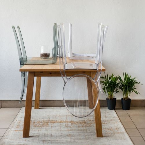 Krzesło Mia to klasyczna forma w nowoczesnym wydaniu. Mia pięknie zaprezentuje się w sypialni, przy domowej toaletce, czy też przy stole w jadalni. Wersja transparentna wykonana jest z polikarbonu, natomiast wariant nieprzezroczysty powstał z poliamidu. Krzesła Mia nadają się do sztaplowania (do 4 sztuk), dlatego też są łatwe w przechowywaniu.