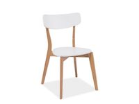 Siedzisko oraz oparcie zostało wykonane z płyty MDF. Nogi są wykonane w kolorze drewna, natomiast siedzisko oraz oparcie w kolorze białym. Dzięki swojej wytrzymałości mebel ten posłuży na długie lata.