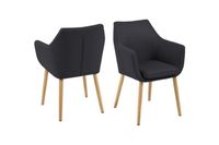 Krzesło Nora Antracyt nawiązuje do kolorystyki wpisującej się w trendy designu. Siedzisko tapicerowane tkaniną o grubym splocie efektownie komponuje się z podstawą wykonaną z drewna dębowego, dodatkowo zabezpieczoną warstwą lakieru chroniącego drewno przed drobnymi uszkodzeniami.