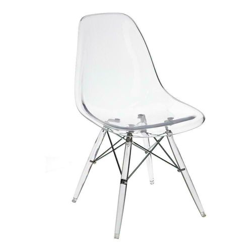 Krzesło w stylu glamour wykonane zostało z polipropylenu oraz z metalu wykończonego w połysku. Nogi krzesła wykonane z tworzywa zostały połączone ze sobą oraz z siedziskiem za pomocą metalowych elementów. Siedzisko oraz oparcie krzesła zostało zrobione z wytrzymałego transparentnego tworzywa . Ponadczasowy styl oraz eklektyzm mebla sprawiają, że doskonale będzie pasowało do każdego rodzaju wnętrza. Maksymalne obciążenie krzesła wynosi 120kg. Wymaga ono prostego montażu polegającego na przykręceniu siedziska do podstawy. Szerokość siedziska: 46 cm Głębokość siedziska: 39 cm