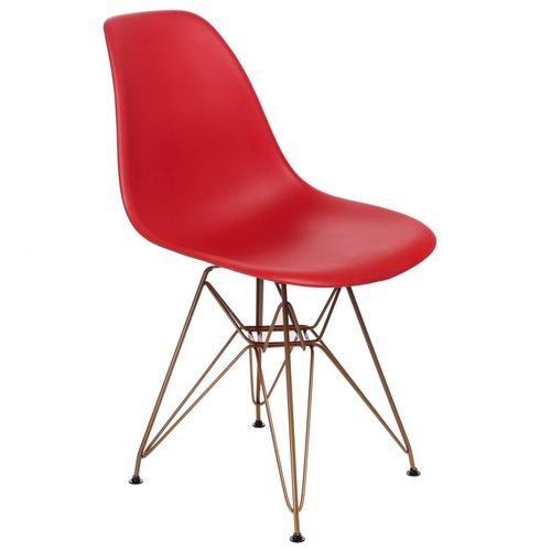 Krzesło w stylu industrialnym wykonane zostało z metalu malowanego proszkowo na kolor złoty wykończonego w połysku oraz siedziska z tworzywa o matowym wykończeniu, dostępnego w wielu kolorach. Ponadczasowy styl oraz eklektyzm mebla sprawiają, że doskonale będzie pasowało do każdego rodzaju wnętrza. Maksymalne obciążenie krzesła wynosi 120kg. Wymaga ono prostego montażu polegającego na przykręceniu siedziska do podstawy. Krzesło nie nadaje się do użytku zewnętrznego.
