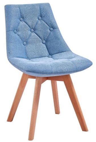 Designerskie krzesło QUEEN KOLORYSTYKA: Siedzisko: Niebieskie Nogi: Drewno bukowe WYMIARY: Szerokość: 49 cm Wysokość całkowita: 80 cm Wysokość siedziska: 50 cm Głębokość całkowita: 55 cm Głębokość siedziska: 39 cm WYKONANIE: Nogi wykonane z naturalnego drewna bukowego Siedzisko obite tkaniną tapicerską