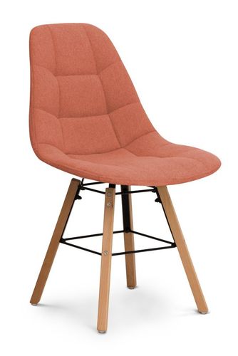 Eleganckie, tapicerowane krzesło o nowoczesnej formie, wprowadza zupełnie nową jakość i funkcjonalność. Świetnie wyprofilowane siedzisko krzesła tapicerowane wytrzymałą tkaniną zapewnia komfort siedzenia. Stelaż 4 nogi z drewna bukowego połączone elementami metalowymi malowanymi proszkowo na kolor czarny. Kolor łosoś O75/buk
