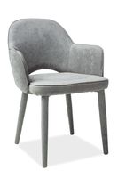 Krzesło ROBIN do jadalni i salonu firmy Signal to awangardowe tapicerowane krzesło o wygodnym szerokim siedzisku. Ten model krzesła wyróżnia się delikatnie zaokrąglonymi kształtami nadającymi mu delikatnego wyglądu. Krzesło w całości tapicerowane jest miękką i przyjemną w dotyku tkaniną do wyboru w kolorze granatowym, szarym oraz ciemnym szarym.
