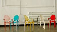 Oryginalny kształt i niebanalny design to wizytówka krzesła Royal. Model inspirowany Louis Ghost wykonany został z wysokiej jakości poliwęglanu wstrzykiwanego w formę pod dużym ciśnieniem. Takie wykonanie gwarantuje wysoką jakość i wytrzymałość. Royal to połączenie ciekawego projektu z użytecznością, bowiem materiał z jakiego zostało wykonane odporny jest na wszelkiego rodzaju zabrudzenia, czy obciążenia. Model inspirowany Louis Ghost idealnie sprawdzi się w nowoczesnych salonach lub restauracjach. Dostępny w różnych wersjach kolorystycznych. Wysokość: 93 cm Szerokość: 54 cm Głębokość: 57 cm Wysokość siedziska: 48 cm Wysokość podłokietników: 67 cm