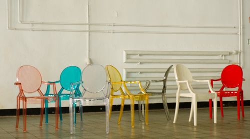 Oryginalny kształt i niebanalny design to wizytówka krzesła Royal. Model inspirowany Louis Ghost wykonany został z wysokiej jakości poliwęglanu wstrzykiwanego w formę pod dużym ciśnieniem. Takie wykonanie gwarantuje wysoką jakość i wytrzymałość. Royal to połączenie ciekawego projektu z użytecznością, bowiem materiał z jakiego zostało wykonane odporny jest na wszelkiego rodzaju zabrudzenia, czy obciążenia. Model inspirowany Louis Ghost idealnie sprawdzi się w nowoczesnych salonach lub restauracjach. Dostępny w różnych wersjach kolorystycznych. Wysokość: 93 cm Szerokość: 54 cm Głębokość: 57 cm Wysokość siedziska: 48 cm Wysokość podłokietników: 67 cm