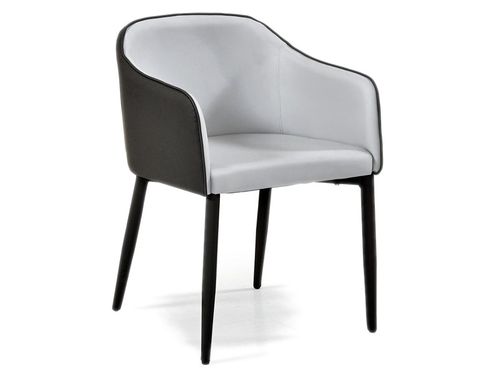Krzesło SHIFT posiada metalową podstawę, którą obito eko-skórą w kolorze ciemnego popielu. Stylowe i wygodne siedzisko z podłokietnikami z przodu tapicerowane jest eko-skórą o barwie jasnego popielu, a z tyłu ciemnego popielu.