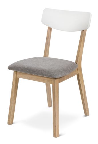 Krzesło Toca - Drewniane krzesło z tapicerowanym siedziskiem w kolorze szarym. Oparcie w kolorze z białym.