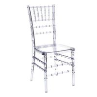 Krzesło transparentne Chiavari to klasyczne krzesło w nowoczesnym wykonaniu. Pozornie delikatne krzesło jest bardzo wytrzymałe, gdyż zostało wykonane z mocnego poliwęglanu. Krzesło jest bardzo łatwe w czyszczeniu. Dzięki swojej formie krzesło idealnie wpasuje się we wnętrza zarówno glamour jak i w stylu nowoczesnym. Głębokość siedziska: 40,5 cm, Max. obciążenie: 120kg Ilość szt. w kartonie: 2szt Krzesło wymaga montażu. Wysokość: 92
