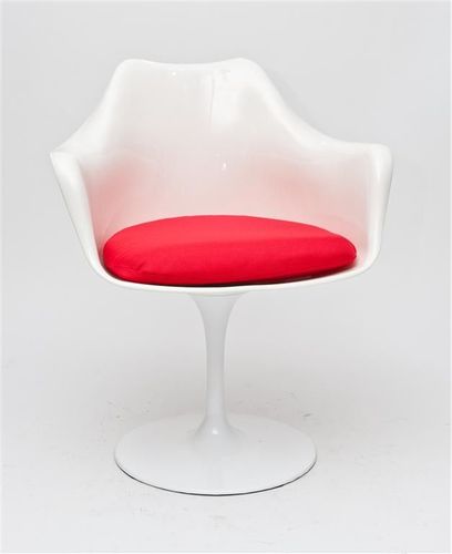 Krzesło Tulip armchair zostało zaprojektowane w 1956 roku przez Eero Saarinena. Podstawa krzesła wykonana jest z lakierowanego metalu. Na podstawie zamontowane jest obrotowe, wykonane z tworzywa siedzisko z poduszką.,Tulip chair, Tulip armchair oraz Tulip table tworzą rodzinę produktów zaprojektowanych przez Eero Saarinena charakteryzujących się podstawami na jednej, zwężającej się ku środkowi nodze.,Prezentowany produkt jest inspirowany projektem Tulip armchair.