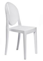 Wykonane z pojedynczego kawałka polycarbonatu, krzesło łączy w sobie czysty design i mocną strukturę z lekkością wyglądu. Zaokrąglona górna część,oparcia kontrastuje z kwadratowym siedziskiem tworząc niespodziewanie elegancką całość. Mimo delikatności formy, krzesło jest stabilne i solidne, a dodatkowo odporne na pogodę.,Prezentowany produkt jest inspirowany projektem Victoria. Maksymalne obciążenie wynosi 120kg