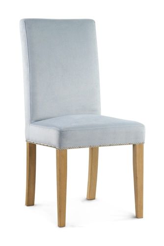 Stylowe tapicerowane krzesło, oparte na drewnianej mocnej konstrukcji. Dzięki wykorzystaniu sprężyny falistej, sziedzisko jest bardzo wygodne. Tapicerowane tkaniną o efekcie aksamitu i wykończone pinezkami. Wszystko to zapewnia wysoki komfort użytkowania przy czy pięknie się prezentuje.