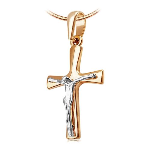 Staviori Krzyżyk. Żółte, Białe Złoto 0,333. Długość 24 mm. Łańcuszek widoczny na zdjęciu to model LZX0468