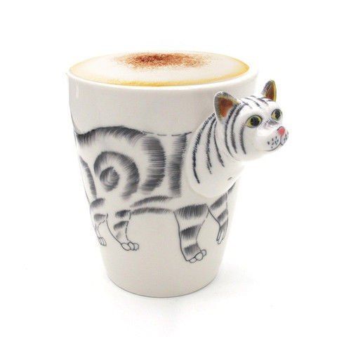 Wysokiej jakości, ręcznie malowany kubek z trójwymiarowym kotkiem, którego głowa służy za uszko, zaś korpus namalowany jest na kubku. Z pewnością przypadnie do gustu miłośnikowi czy miłośniczce tych miłych zwierzaków. Idealny pomysł na prezent dla wielbiciela kotów i ogólnie zwierząt.