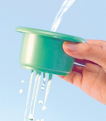 Kolorowe kubki do kąpieli w różnych rozmiarach.