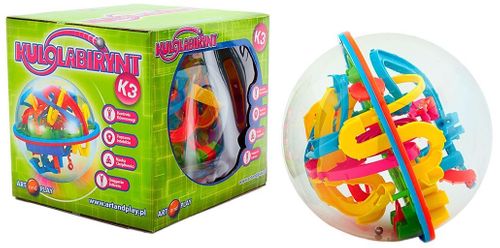 KULOLABIRYNT to labirynt zamknięty w plastikowej kuli. Wewnątrz znajduje się mała metalowa kulka, którą należy doprowadzić do celu radząc sobie z różnego rodzaju przeszkodami takimi jak zapadnie i przepaście. Do wyboru są różne ponumerowane drogi prowadzenia kulki. To zabawka zręcznościowa zarówno dla dzieci, jak i dorosłych. Ćwiczy koncentrację, cierpliwość oraz zdolności manualne. Pozwala kontrolować równowagę, poprawia intelekt, uczy cierpliwości, pokazuje jak zwyciężać.