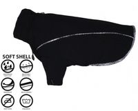 Kurtka z soft shellu trójwarstwowego, nie przepuszcza wiatru, wodoodporność 10000mmH2O, paroprzepuszczalnoąść 3000 g/m2/24h. Kolor czarny, wypustka w cięciu bocznym i lamówka w kratkę pasująca do kolekcji HOSTA, rękaw przedni, wysoka stójka, zapięcie na zamek błyskawiczny na plecach. Regulacja tęgości w pasie i przy szyji. Miękka lekka ciepła i wygodna.