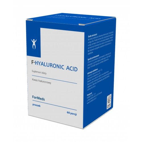 Suplement diety F-HYALURONIC ACID zawiera kwas hialuronowy oraz inulinęz korzenia cykorii w formie proszku. Kwas hialuronowy został wyprodukowanyw procesie fermentacji przy użyciu mikroorganizmów.