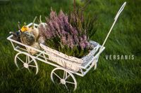 Piękny i solidnie wykonany kwietnik w formie wózka; Kwietnik ten jest idealny dla ludzi kreatywnych i z pomysłami. Ten metalowy wózek będzie świetną podporą do różnych kompozycji kwiatowych. Każda pani domu ucieszy się z takiego prezentu.