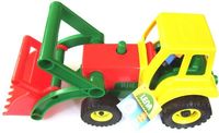 Kolorowa koparka o długości 35 cm, wykonana z elestycznego plastiku wysokiej jakości, spełniającego normy europejskie. Funkcjonalne autko, łyżką można nakładać piasek na wywrotkę lub w inne miejsce.