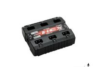 Zaprojektowana z myślą o poważnych entuzjastach latania indoor, ładowarka HEX jest w stanie ładować sześć akumulatorów LiPol 1S w tym samym czasie i to zupełnie niezależnie. Cztery gniazda mają prąd ładowania 300mA, a dwa 600mA. Gniazda pasują zarówno do małych pakietów E-Flite, jak i Scorpio. Przy użyciu zawartego w zestawie adaptera, można ładować również akumulatory z innymi typami konektorów (Blade 120, Blade mQX, Blade mCPX).