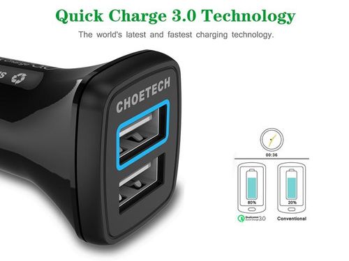 Wysokiej jakości ładowarka samochodowa, która obsługuje technologie Qualcomm Quick Charge 3.0. Posiada 2 wyjścia USB. Ładowarka automatycznie dopasowuje optymalne parametry ładowania urządzenia. W pełni zabezpieczona przed przegrzaniem, zwarciem i tym podobne. Kompaktowe wymiary pozwalają łatwo dopasować ładowarkę do wnętrza auta.