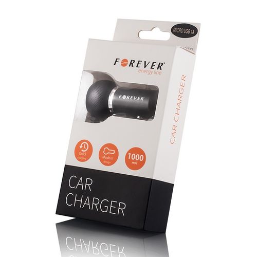 Klasyczna ładowarka samochodowa z wbudowanym kablem micro USB w kolorze czarnym, na długim 2,5-metrowym kablu.