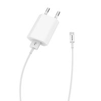 Ładowarka sieciowa z doczepianym kablem USB lightning autoryzowana przez Apple, posiadająca certyfikat MFI. Ładowarka posiada wyjście USB 5V 2,1A. Wykonana z niepalnego materiału PC, z certyfikatami bezpieczeństwa: CE, FCC, RoHS. Kabel doczepiany, metrowy z miedzianym rdzeniem.