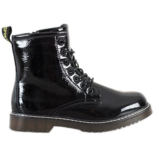 Lakierowane workery w kolorze czarnym to idealna opcja na co dzień. Buty są lekkie, wygodne, ale i solidne. Posiadają elastyczną, reagującą na ruch podeszwę, a także wyprofilowaną pod kątem ergonomii stopy wkładkę wewnętrzną. Mają ponadczasowy styl, który pasował będzie do większości casualowych stylizacji.