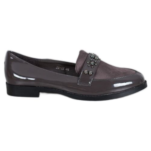 Zjawiskowe mokasyny w kolorze szarym przypadną do gustu kobietom ceniącym sobie niesztampowe wzornictwo. Lakierowana powierzchnie dodaje elegancji i uroku.
