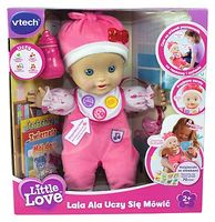 VTech Trefl Lala Ala Uczy się mówić ! interaktywna Nr kat: 60456 Lalka Ala rośnie razem z dzieckiem! Porozmawiaj ze swoją nową lalką! Im więcej będziesz do niej mówić, tym więcej słów i zwrotów nauczy się dzięki Tobie! Lalka może rozwijać się od noworodka do przedszkolaka, poprzez systematyczną nauki i interaktywną zabawę. Lalka jest doskonałą zabawką, która uczy opieki, pielęgnacji, miłości i troski. Zawiera 4 warianty zabawy: - Rozmawiaj ze mną - Zaopiekuj się mną - Poczytaj mi - Posłuchaj muzyki Trzy kolorowe książeczki służą do edukacji lalki. Przyczyniają się do utrwalenia wiedzy dziecka i dzielenia się wiedzą z innymi. W sumie aż 80 fraz do nauki, rzeczywiste odgłosy ssania smoczka i picia z butelki, ponad 10 melodii! Co więcej, lalka wchodzi w interakcję z dzieckiem, zadając pytania i zachęcając do opieki nad nią. Niesamowita zabawa może zacząć się od nowa, gdy tylko zechcesz. Wystarczy zresetować lalkę, a z powrotem stanie się noworodkiem! Wideo: https://youtu.be/qPqiG9vtjkU ------------------------------------------------------------------------------------------------------------ Przy wpłacie do godziny 17 wysyłamy jeszcze tego samego dnia. Wysyłamy również w soboty. Przy zamówieniu (przesyłka kurierska) do godziny 14 dajemy gwarancję doręczenia na drugi dzień roboczy !!! Po wpłacie od razu masz możliwość śledzenia swojej przesyłki. -------------------------------------------------------- Nasz towar jest: - nowy, - posiada oryginalne opakowanie oraz metki, - jest oryginalnie zapakowany, - dostajesz paragon lub fakturę Vat, - posiada 24 miesięczną gwarancje producenta,