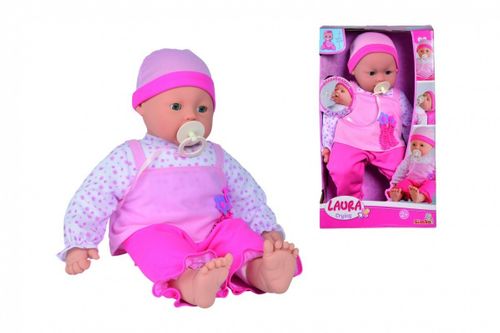 Miękka lalka z zamykanymi oczkami, bobas potrafi płakać i przestaje płakać po włożeniu do buźki smoczka.