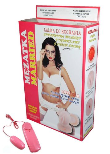 Mężatka - lalka miłości. Piękna nadmuchiwana lalka miłości z czarującą nadrukowaną twarzą i stojącą pozycją, która kusi i wzbudza sensację. Jest ona naturalnych rozmiarów, posiada piersi i 3 kuszące dziurki miłosne, w których można umieścić penisa.