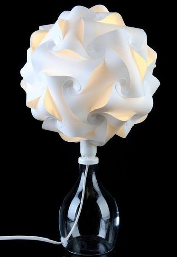 Klosz złożony z 30 elementów osadzony na podstawie ze szkła w kształcie butelki