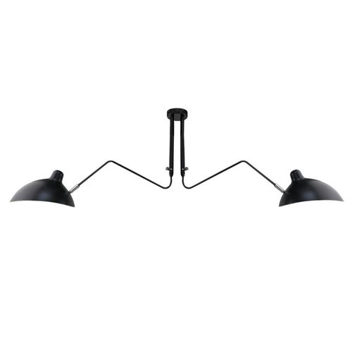 Lampa dwuramienna wykonana została z metalu. Cięte i formowane ręcznie osłonki osadzone są na stalowych konstrukcjach. Klosz zewnątrz czarny mat, wewnątrz biały mat. Źródło światła: E 27 Waga netto 1 szt.: 10 kg Waga opakowania: 12 kg Maksymalna ilość szt. w opakowaniu: 1 Sposób wysyłki: Paczka Produkt do samodzielnego montażu: Tak