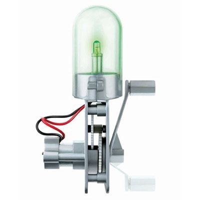 Zamień zwykły silnik zabawki na generator, który przetwarza ruch ręki w energię elektryczną i zasila żarówkę! Zabawka nie wymaga baterii ani nie emituje zanieczyszczenia. Generator może służyć jako lampka lub mini latarka.